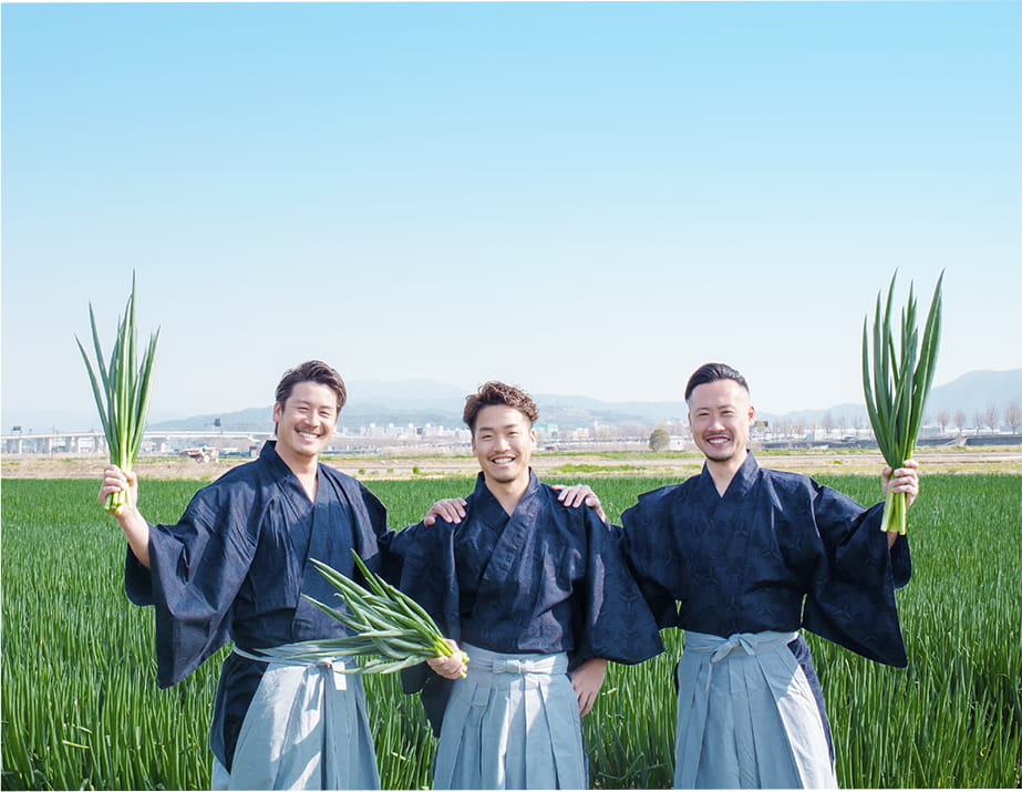 京都の伝統野菜『九条ねぎ』のブランド。先人たちの思いを継承しながら、新しい価値を生み出し、100年先まで続くブランドとしていくために、九条ねぎの生産農家が集まって作られた「京葱SAMURAI」。あぐり翔之屋は、「九条ねぎ」をはじめとした、先人たちが作ってきたブランドを、次の世代に受け継いでいくために、「京葱SAMURAI」に参画しています。